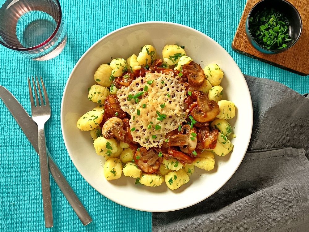 Gnocchi & Champignon-Tomatensauce mit Käsechips und Schnittlauch - Zusatzinformation