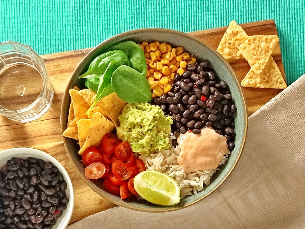 Ernährungsweise glutenfrei, laktosefrei, vegetarisch Kategorie Familienfreundlich, Fitness Hauptzutat Gemüse Region amerikanisch, mexikanisch Schwierigkeitsgrad einfach Zutaten in der Kochbox Avocado, Basmatireis, Knoblauch, Limette, Schwarze Bohnen, Ketchup, Mayonnaise, Cocktailtomaten, Tortilla-Chips, Mais, Chilischote, Gewürzmix, Baby Blattspinat Optionale Zutaten in der Kochbox (abbestellbar) Honig Vorratskammer (gut zu Hause zu haben) Pfeffer, Salz, Öl Benötigte Kochutensilien Topf, Pfanne, Backblech, Backpapier, Sparschäler, Küchenreibe, Sieb, Zitronenpresse Allergene enthält Eier und Eierzeugnisse Spurenhinweis Kann Spuren von Milch enthalten Saison Nein Arbeitszeit in Minuten 25 Gesamtzeit in Minuten (2 Personen) 25 Wann kochen? Tag 1-4 - Bewertungen